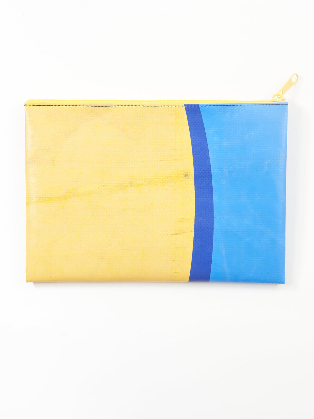 Die ziemlich grosse, individuell rezyklierte A5-Pouch mit farbigem Reissverschluss für Postkarten, Spielkarten, gefälschte Pässe und alles, was sich sonst noch in der untersten Schublade versteckt.