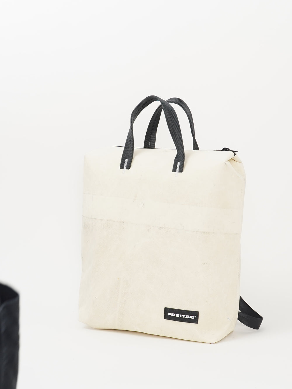 Doppelhandträger und verstellbare Schulterriemen mit Planenfähnchen. Drei Innensteckfächer. Reissverschlossenes Schnellzugriffsaussenfach.