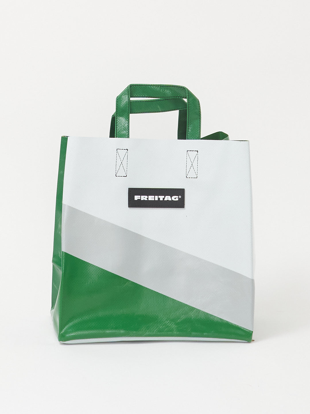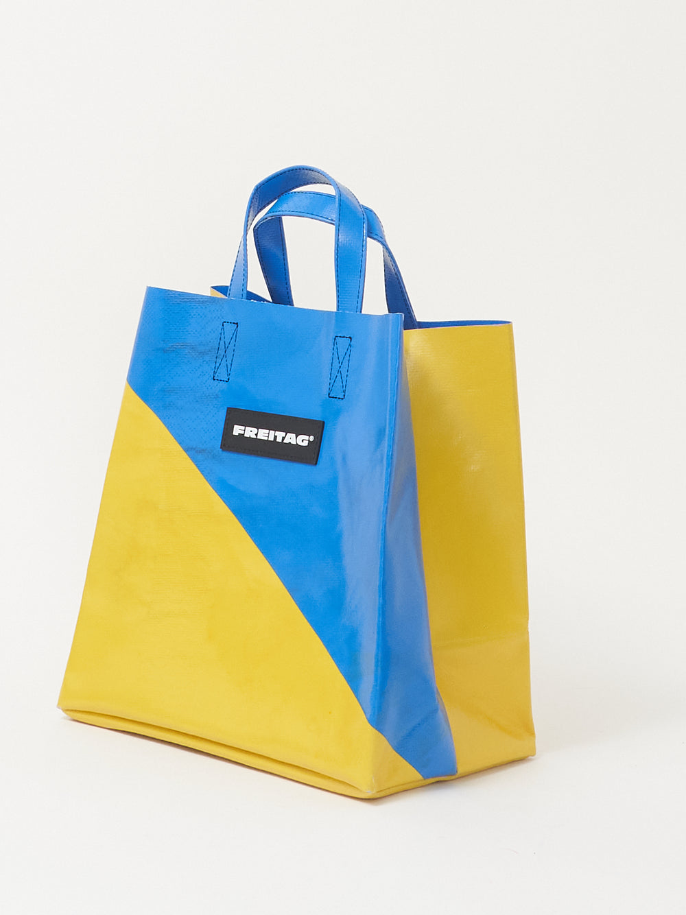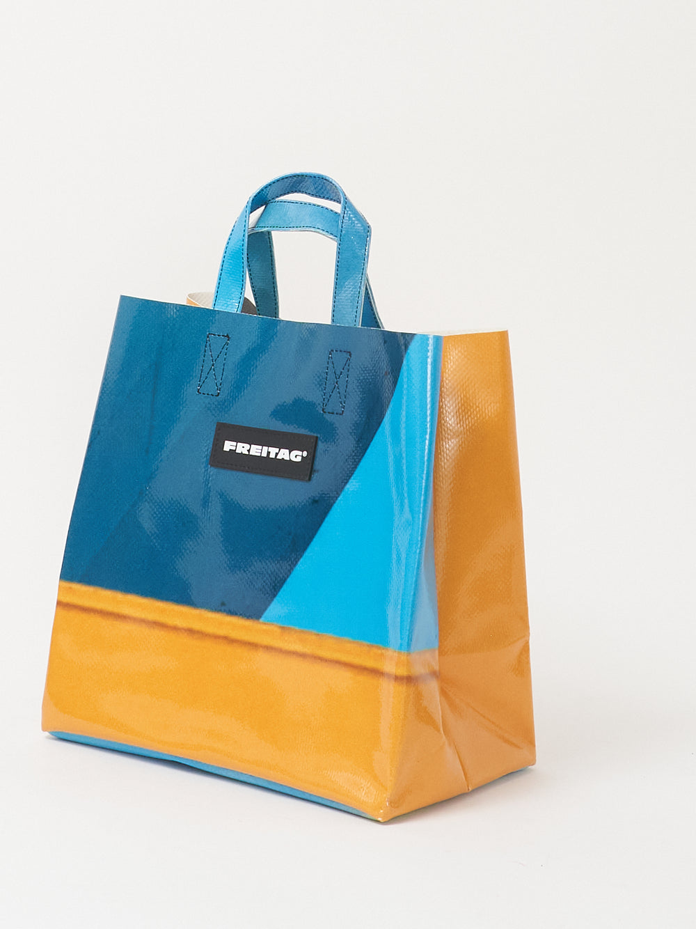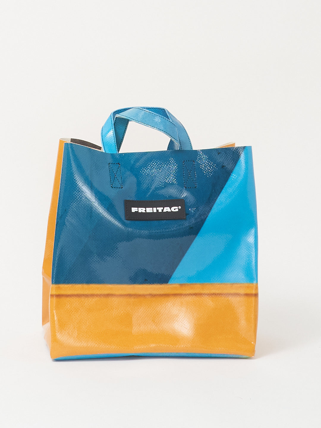 Die kompakte Version des FREITAG Einkaufstaschenklassikers, hergestellt aus ausgedienten LKW-Planen.
