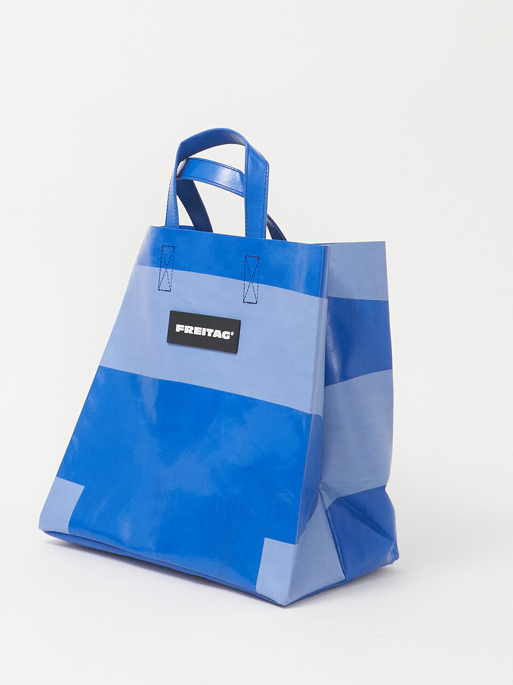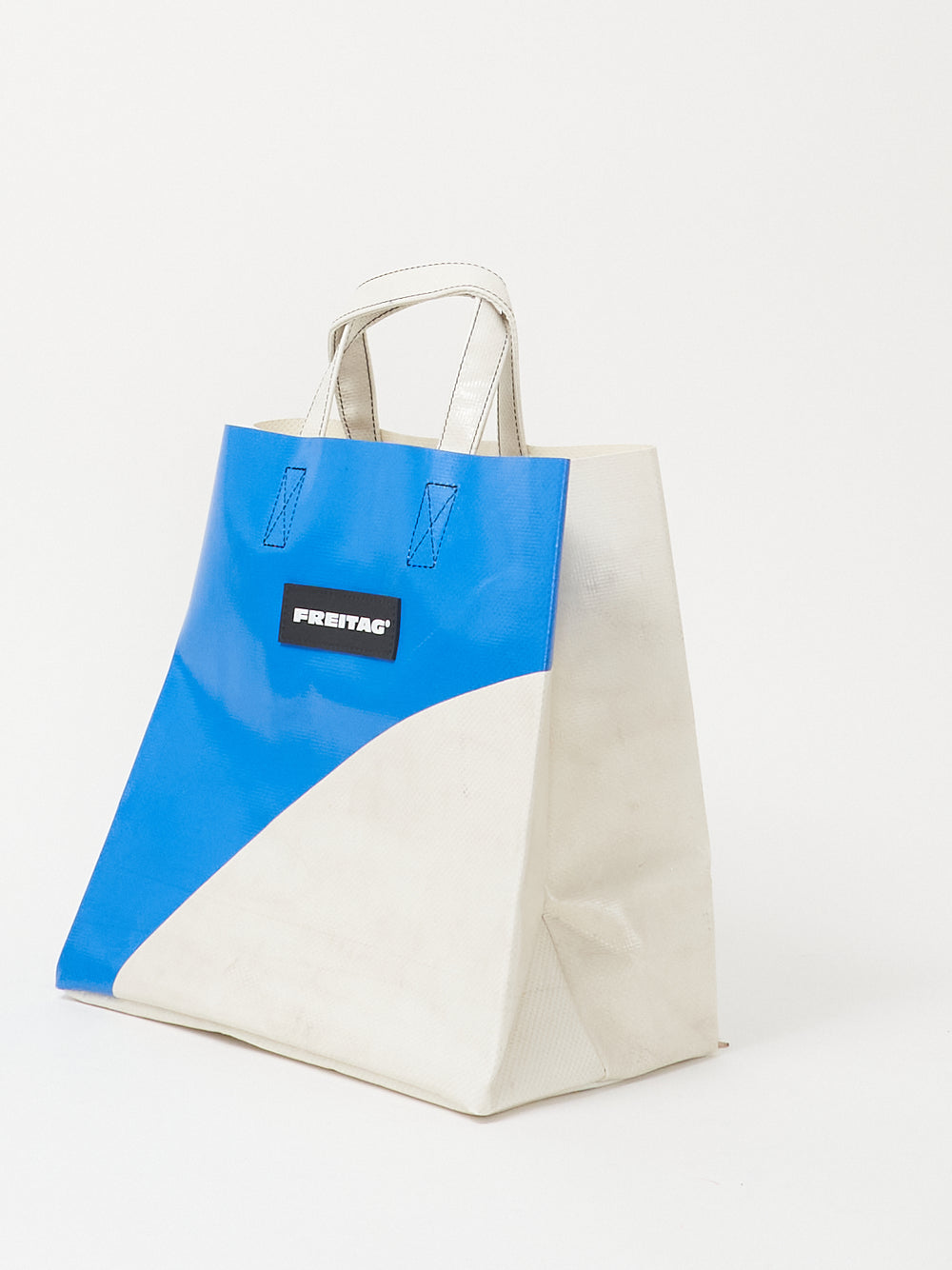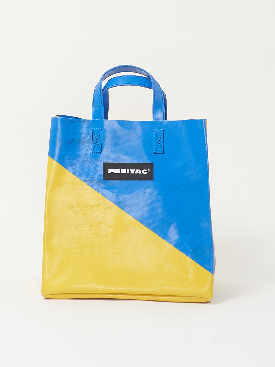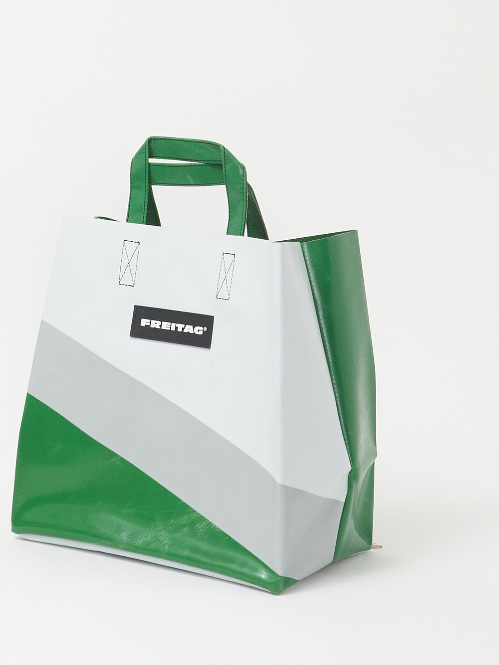 Die kompakte Version des FREITAG Einkaufstaschenklassikers, hergestellt aus ausgedienten LKW-Planen.