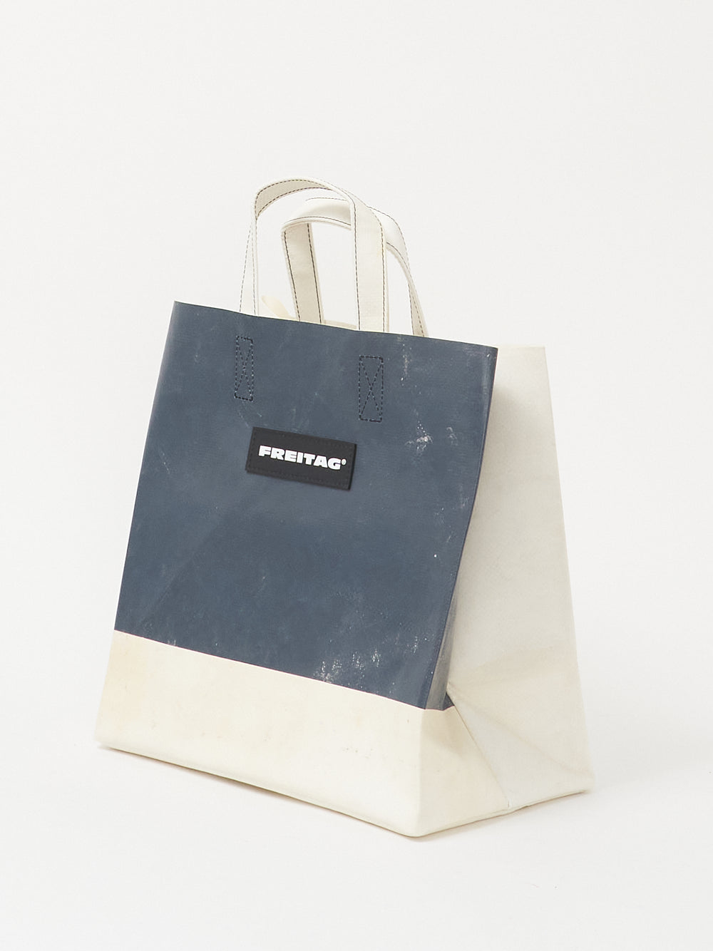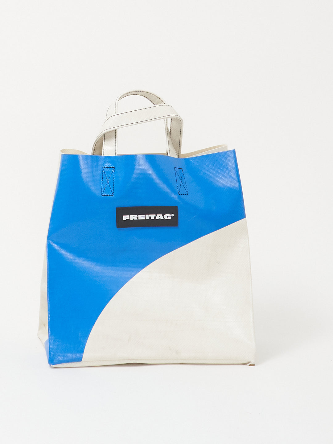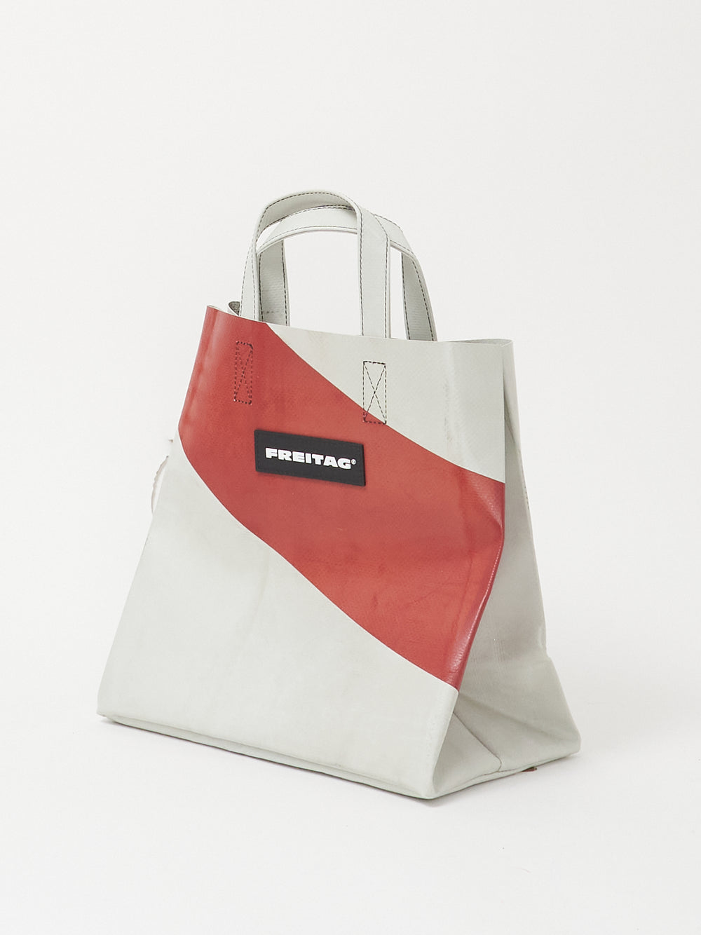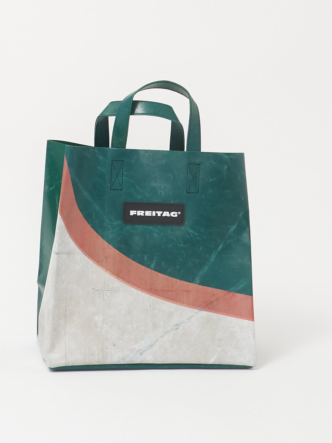 Die kompakte Version des FREITAG Einkaufstaschenklassikers, hergestellt aus ausgedienten LKW-Planen.