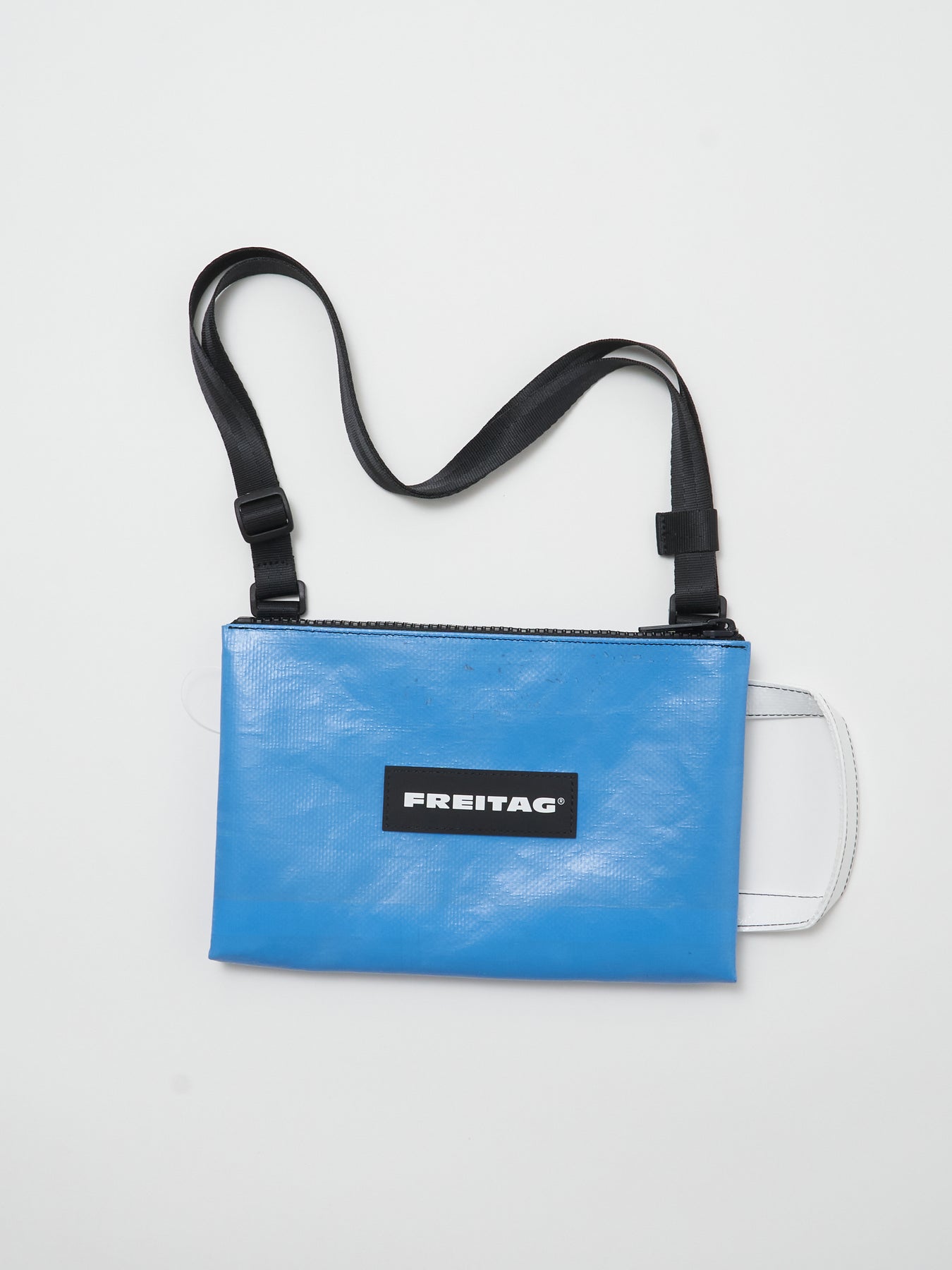 Der kleine, flache Crossbody Bag hergestellt aus alten LKW-Planen. Mit griffigem Griff, geheimem Geheimfach und Platz für die wichtigsten Wichtigkeiten.
