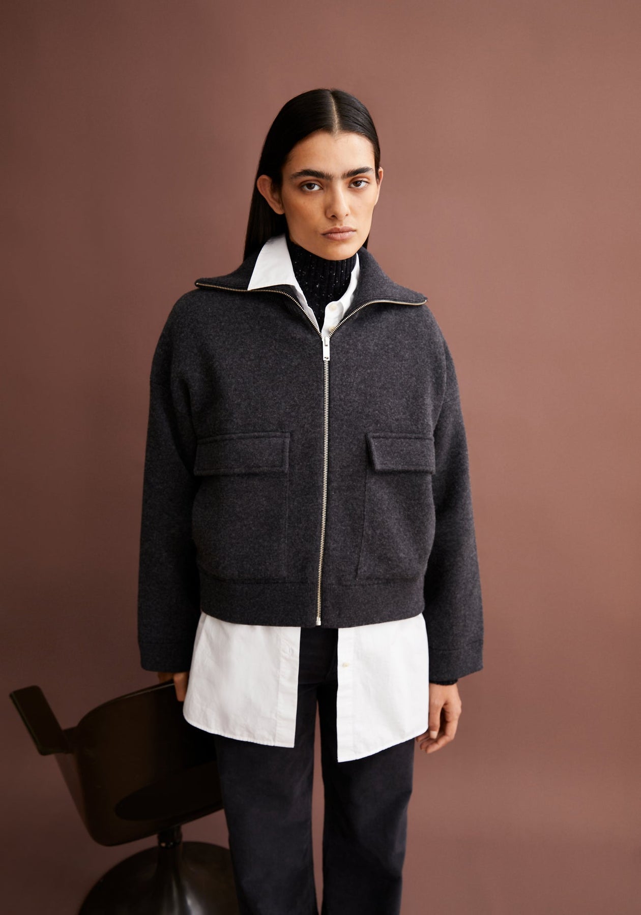 - Kragen: Troyer mit Reißverschluss
